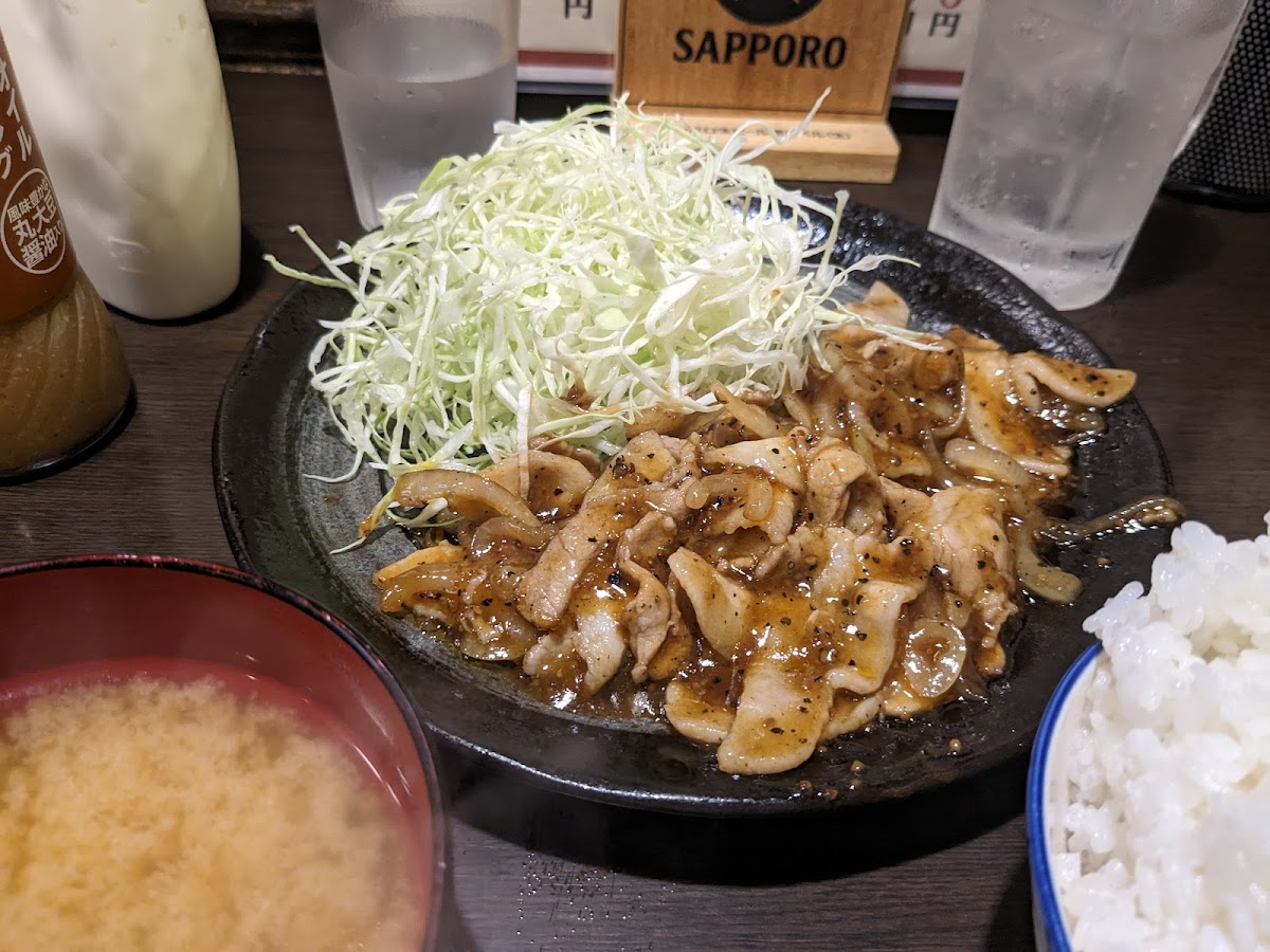 For those looking for a heartier meal, the 山賊焼定食 (sanzoku grilled chicken set) is another fantastic choice. This dish features tender, juicy chicken, grilled to perfection, and served with rice and pickles, offering a well-rounded meal that’s satisfying and delicious. And if you're in the mood to unwind with a drink, Ramen Taikou also offers 瓶ビール (bottled beer), making it an ideal spot for a casual night out with friends or family.